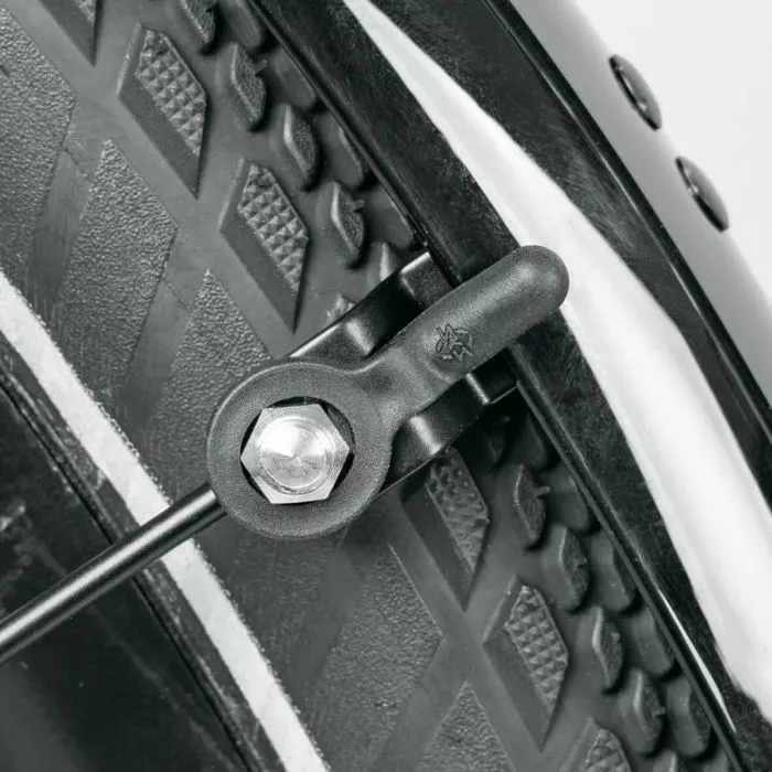 Das ASR- bzw. ESC-Sicherheitssystem sorgt für ein Entkoppeln der Streben, wenn Zweige zwischen die Speichen gelangen, sodass das Rad nicht blockiert. Die V-Streben mit Festbrücken garantieren eine individuelle Anpassung, die Tretlager-Ausschnitte machen eine Montage auch bei engem Bauraum möglich. Inklusive Zubehör und Streben.